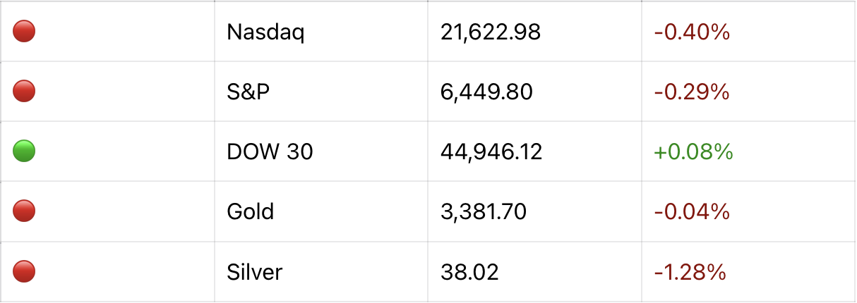 ↗️ Intel: Shares of the chipmaker rose 4.5% in premarket trading, extending Thursday’s gains, amid reports that the Trump administration is in talks to potentially take an ownership stake in the company.