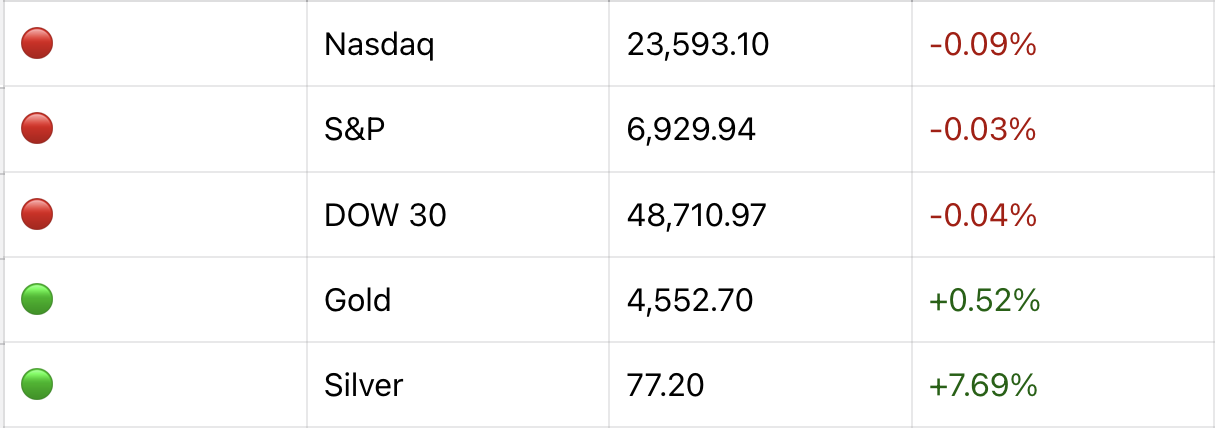 📉 Trading volumes hit a yearly low in a sleepy post-holiday market, but silver stole the spotlight by breaking records amid investor distrust in global economic stability.