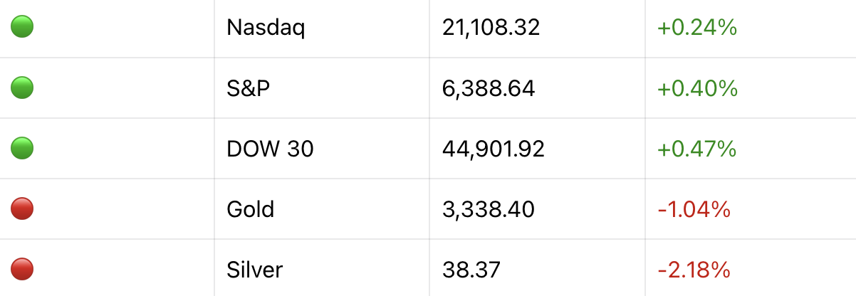 ↗️ Volkswagen: Despite slashing its full-year financial outlook due to $1.5 billion in tariff-related losses during the first half, the German carmaker’s shares climbed nearly 4%.