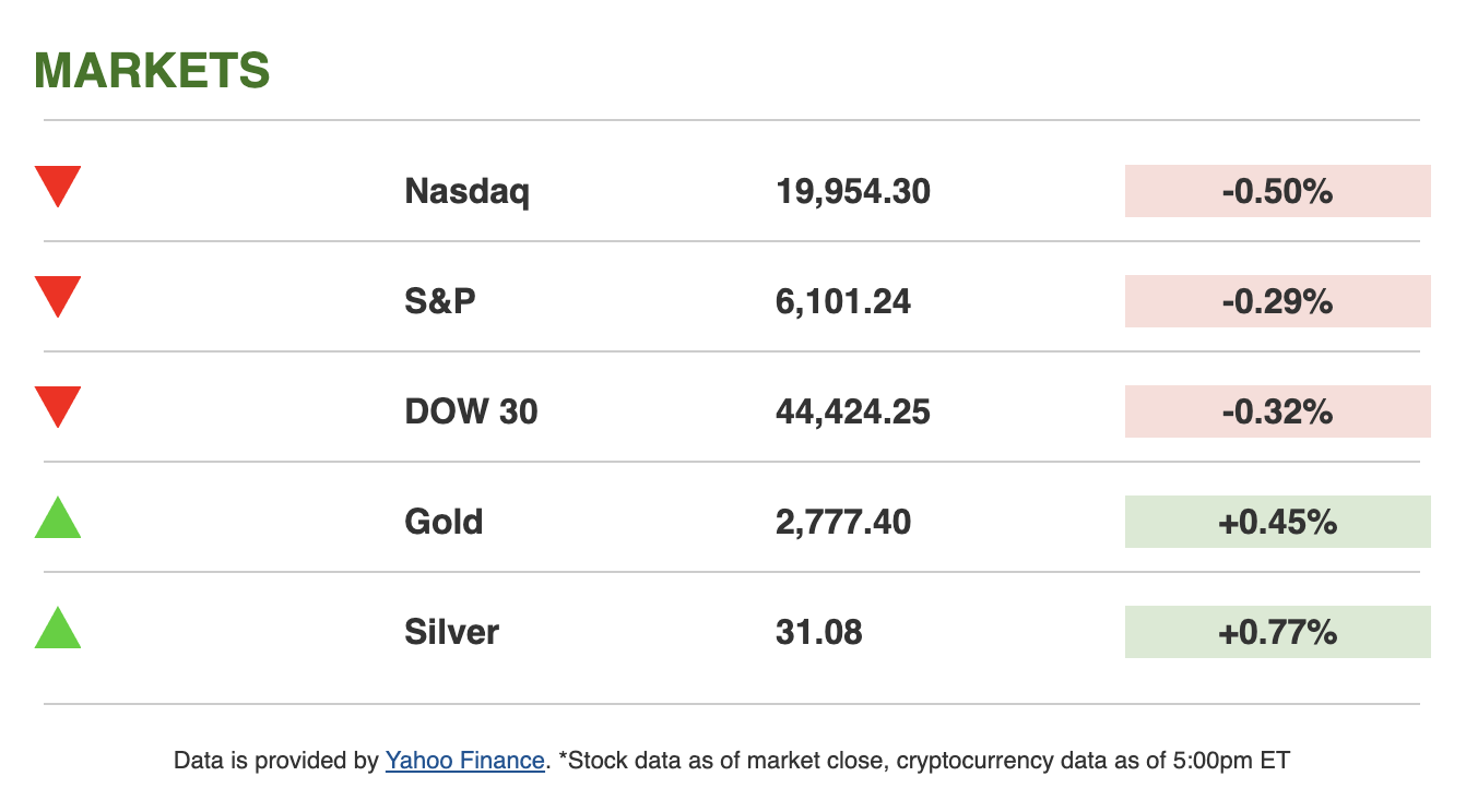 ↘️ Texas Instruments: The chipmaker’s shares dropped about 5% premarket after its quarterly outlook fell short of expectations.