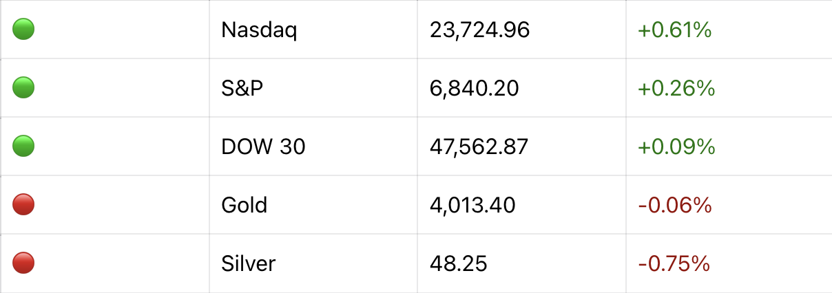 ↗️ Amazon: Shares surged 12% in premarket trade after the e-commerce titan revealed stronger-than-expected AI-driven revenue growth and outlined major expansions in its data-center infrastructure.